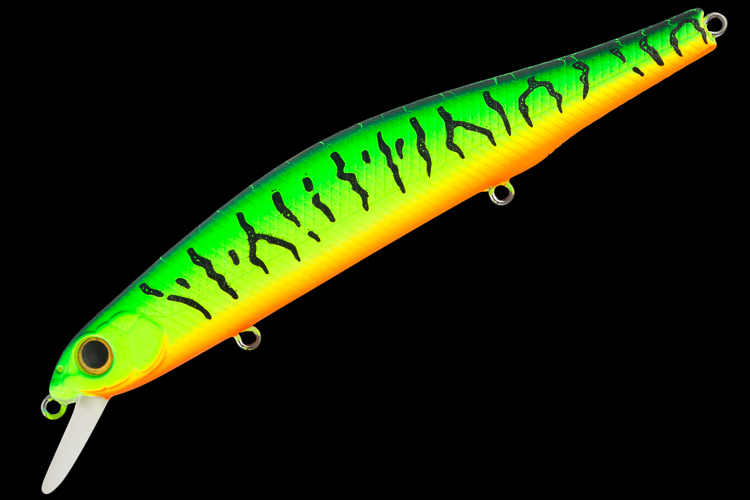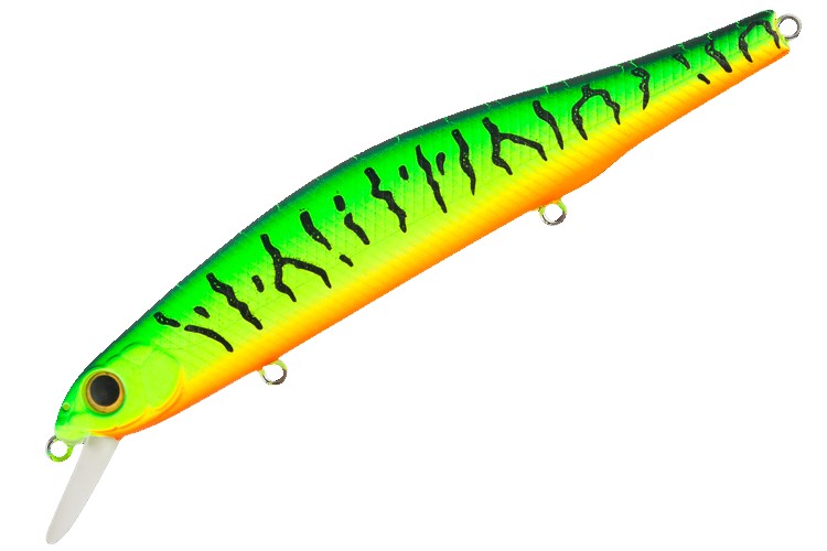 Воблер Tsu Yoki Watson 110SP - Минноу для облова больших водных территорий с фоновыми глубинами до 3.0 метров. WATSON 110SP оснащен магнитной системой дальнего заброса и системой балансировки. Для WATSON 110SP применимы все варианты проводок, от равномерной до рывковой. На равномерной проводке воблер имеет выраженную собственную игру,активно раскачиваясь с боку на бок и виляя хвостовой частью. При проводке стоп-энд-гоу WATSON 110SP на активной фазе роллингует, и устойчиво зависает в паузе, качнув пару раз боками. На рывковой анимации воблер показал себя очень послушным и чутким к каждой манипуляции удилищем. Анимация возможна как мягкими (почти как протяжка) рывками, так и низкоамплитудными резкими рывочками. При них воблер крутится почти на месте, разворачиваясь на 90+ градусов, и эффектно зависает в паузе.