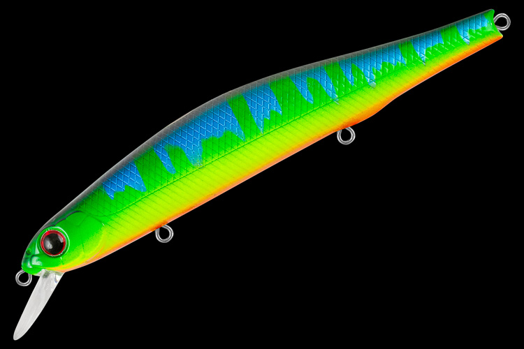 Воблер Tsu Yoki Watson 110SP - Минноу для облова больших водных территорий с фоновыми глубинами до 3.0 метров. WATSON 110SP оснащен магнитной системой дальнего заброса и системой балансировки. Для WATSON 110SP применимы все варианты проводок, от равномерной до рывковой. На равномерной проводке воблер имеет выраженную собственную игру,активно раскачиваясь с боку на бок и виляя хвостовой частью. При проводке стоп-энд-гоу WATSON 110SP на активной фазе роллингует, и устойчиво зависает в паузе, качнув пару раз боками. На рывковой анимации воблер показал себя очень послушным и чутким к каждой манипуляции удилищем. Анимация возможна как мягкими (почти как протяжка) рывками, так и низкоамплитудными резкими рывочками. При них воблер крутится почти на месте, разворачиваясь на 90+ градусов, и эффектно зависает в паузе.