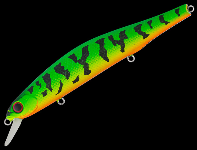 Воблер Tsu Yoki Watson 110SP - Минноу для облова больших водных территорий с фоновыми глубинами до 3.0 метров. WATSON 110SP оснащен магнитной системой дальнего заброса и системой балансировки. Для WATSON 110SP применимы все варианты проводок, от равномерной до рывковой. На равномерной проводке воблер имеет выраженную собственную игру,активно раскачиваясь с боку на бок и виляя хвостовой частью. При проводке стоп-энд-гоу WATSON 110SP на активной фазе роллингует, и устойчиво зависает в паузе, качнув пару раз боками. На рывковой анимации воблер показал себя очень послушным и чутким к каждой манипуляции удилищем. Анимация возможна как мягкими (почти как протяжка) рывками, так и низкоамплитудными резкими рывочками. При них воблер крутится почти на месте, разворачиваясь на 90+ градусов, и эффектно зависает в паузе.