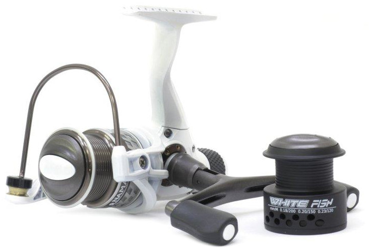 Катушка Namazu White Fish - новая линейка бюджетных безынерционных катушек от молодого, набирающего популярность брэнда - Namazu. Катушки отличаются серебристо-белым привлекательным дизайном. У всех модификаций фрикцион расположен сзади. Ориентированы они в первую очередь на ловлю донную, а также поплавочную. Для того, чтобы увеличить прочность и сохранить малую массу корпус графитовый. Выточенная из алюминиевого сплава шпуля подверглась перфорации. Скошенная геометрия бортика способствует увеличению дальности заброса. Круглая клипса из металла позволяет зафиксировать леску.
