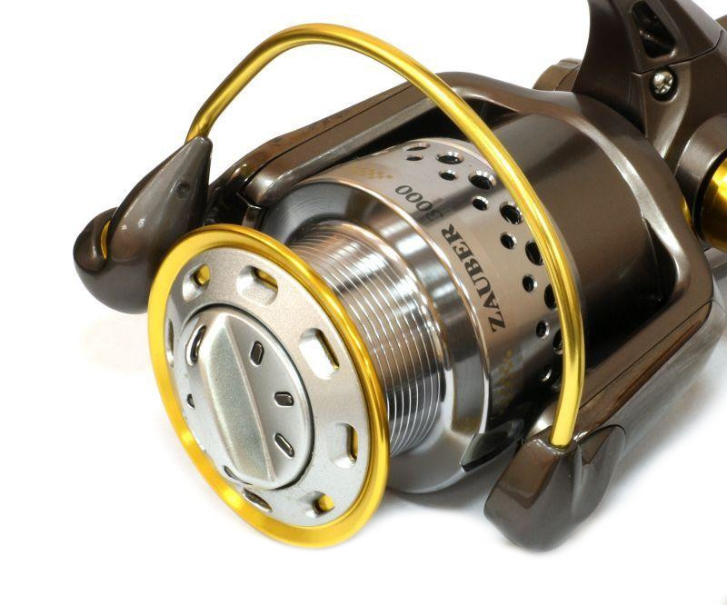 Одними из первых безынерционных катушек, которые стали очень популярными среди отечественных спиннингистов, были катушки из серии Zauber от компании Ryobi . Четыре модели, входящие в эту линейку, отличаются сравнительно небольшой массой (от 280 до 315 гр) и обладают передаточным числом равным 5.0 или 5.1:1. Надежность корпусу и основным деталям придает применяемый при производстве металл. Но самое главное - Zauber отличается плотной и ровной укладкой шнура, что достигается за счет использования механизма с "бесконечным" винтом и системой замедленной осцилляции. Добавим сюда установку 8 подшипников, обеспечивающих мягкий ход. Все это сделало данную серию чрезвычайно известной у рыболовов. Металлическая шпуля облегчена за счет перфорации и имеет бортик с покрытием из твердого сплава. Лесоемкость (зависит от модели) составит 65-200 м лески 0,285 мм. Фрикцион передний, с эластичной прокладкой, предотвращающей попадание воды. Максимальные нагрузки для тормоза составляют 2.5 или 5 кг.